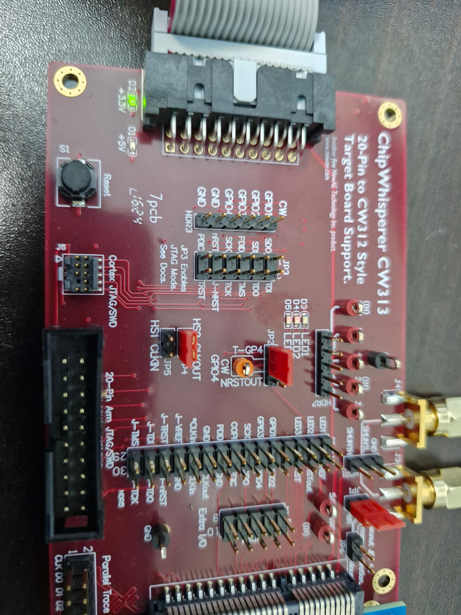 I used ChipWhisperer Husky, ChipWhisperer CW313, SAM4S Target Board.