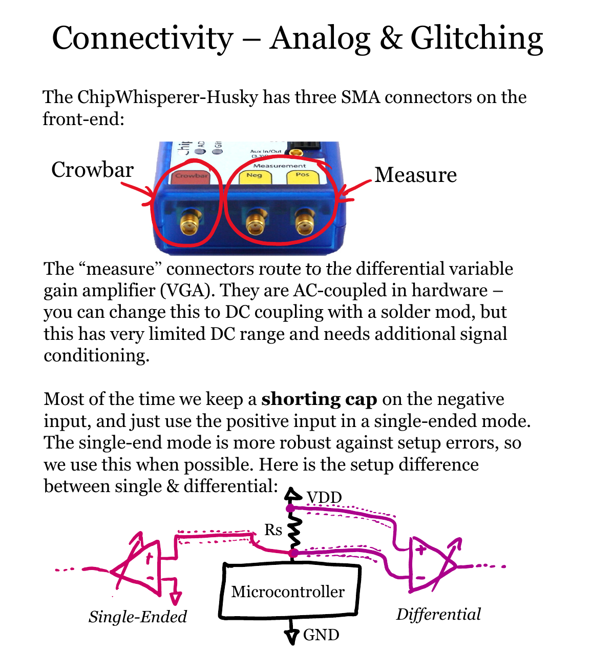 The SMA cable is attached from Husky POS to SHUNT HIGH on the target board. The SHUNT LOW is left open. Is this correct? Or should Husky NEG be attached to SHUNT LOW as well?