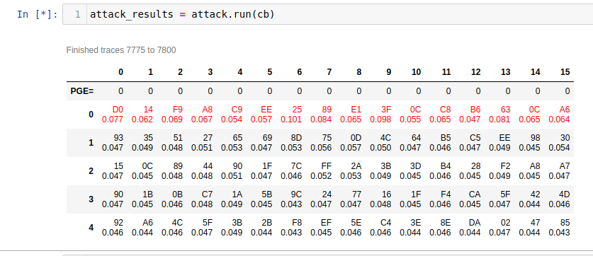 The average APG is 124. None of the correct key-bytes are guessed correctly, nor are they even within the top 5 guesses.