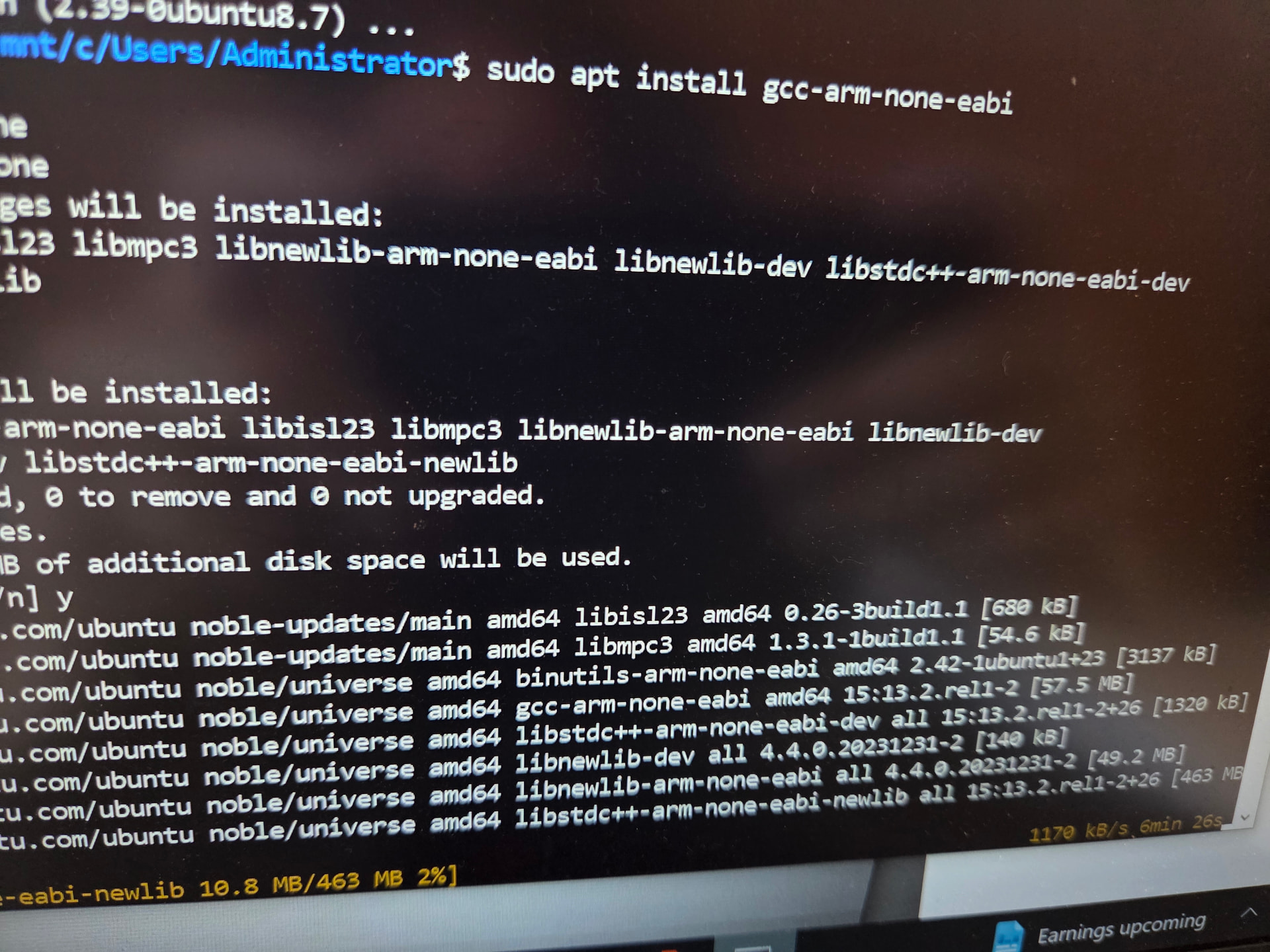 But hangs for me , great…. 25mins in and nothing… im going to check my firewall settings somthing isn’t happening that may well be the problem, I installed the ARM gcc within WSL