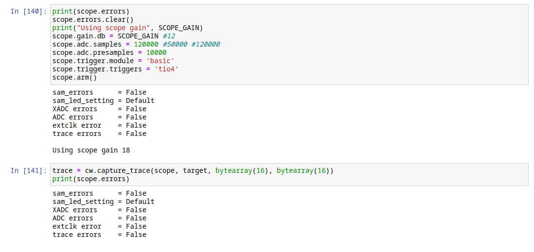 I’ve tried to go through all the settings and try them out, but can’t figure it out for simple TIO4 trigger with simpleserial-aes on CW308 target STM32F415 (F3 or ATSAM shouldn’t be different).