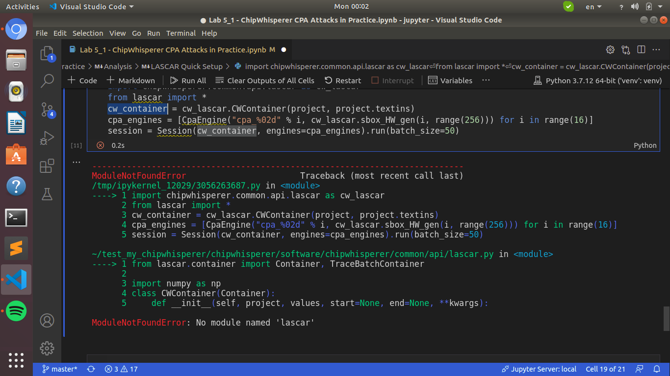 But the error I am getting is due to module lascar missing obviously (as illustrated in the attached snapshot).