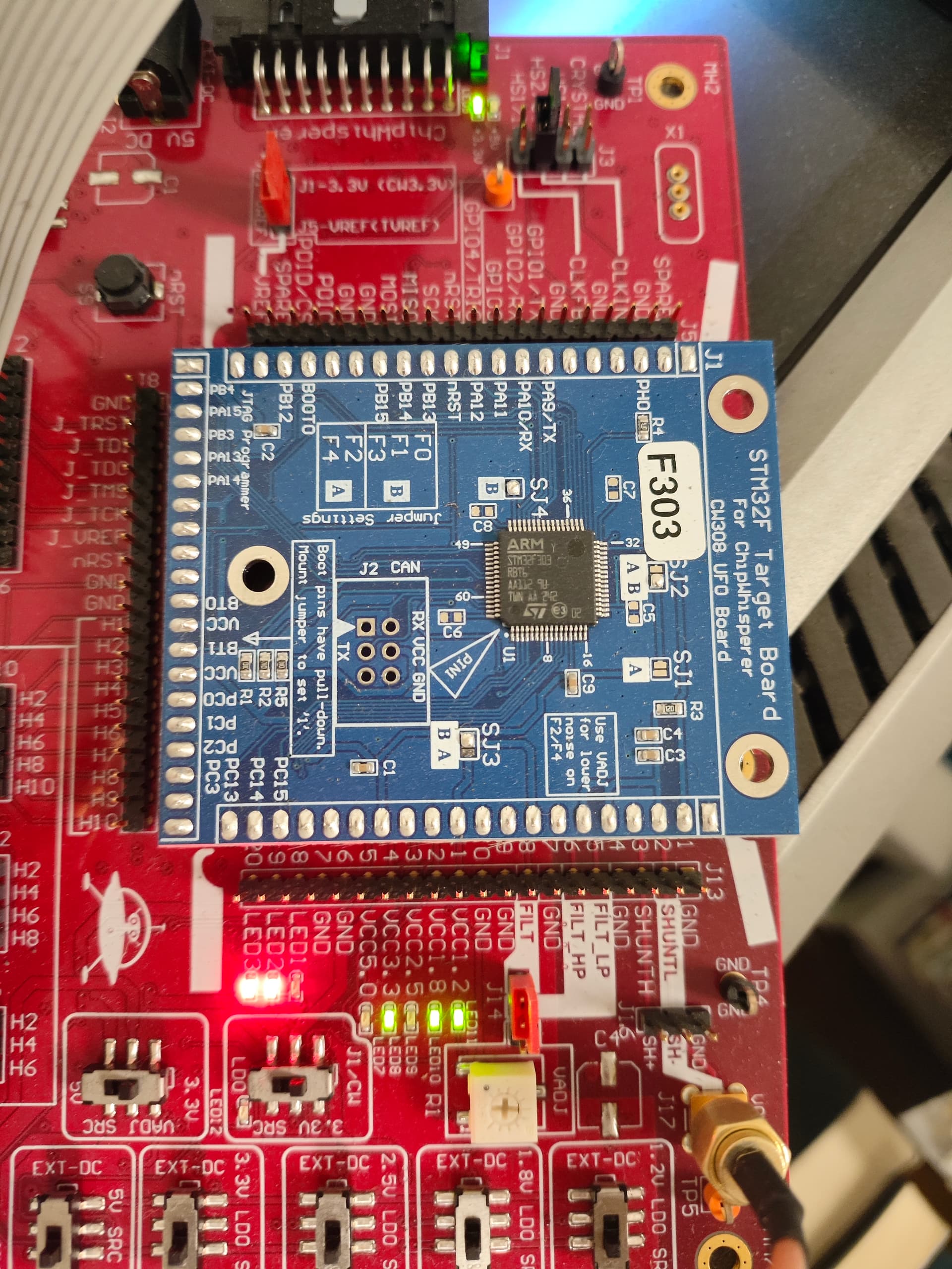 My current setup involves a ChipWhisperer-Lite/Pro and the standard CW308T-STM32F3target board.However, I have encountered a significant bottleneck: the 40KB RAM on the STM32F303 is insufficient for running the full Falcon signature scheme, which leads to memory overflows during the recursion and sampling stages.Therefore, I would like to replace the default F3 target with my own development board which has a larger RAM (e.g., an STM32F4 Discovery board or a custom PCB with STM32F405).