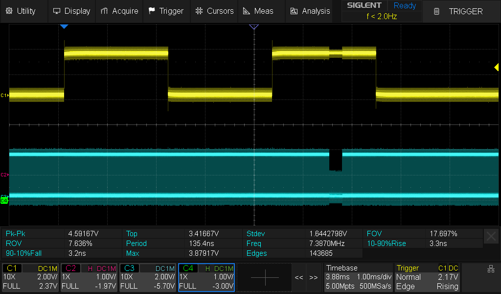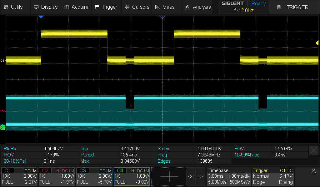scope.trigger.triggers = "tio4" # This is connected to nRst pin to trigger on reset (not sure if there's a better way)
